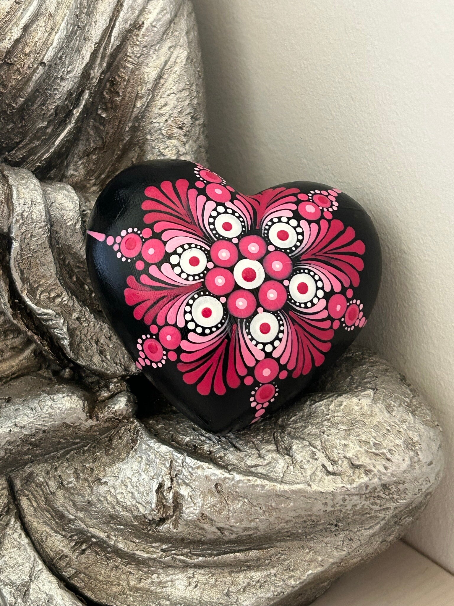 - die Vielfalt meiner Mandala Steine - sowie der Mandala Herzen ist ebenso ein Genuss - es gibt sie in verschiedenen Grössen - noch dazu sind sie von mir aus Gips gegossen , sie werden nach dem Trocknen mit grösster Sorgfalt Punkt für Punkt bedottet.