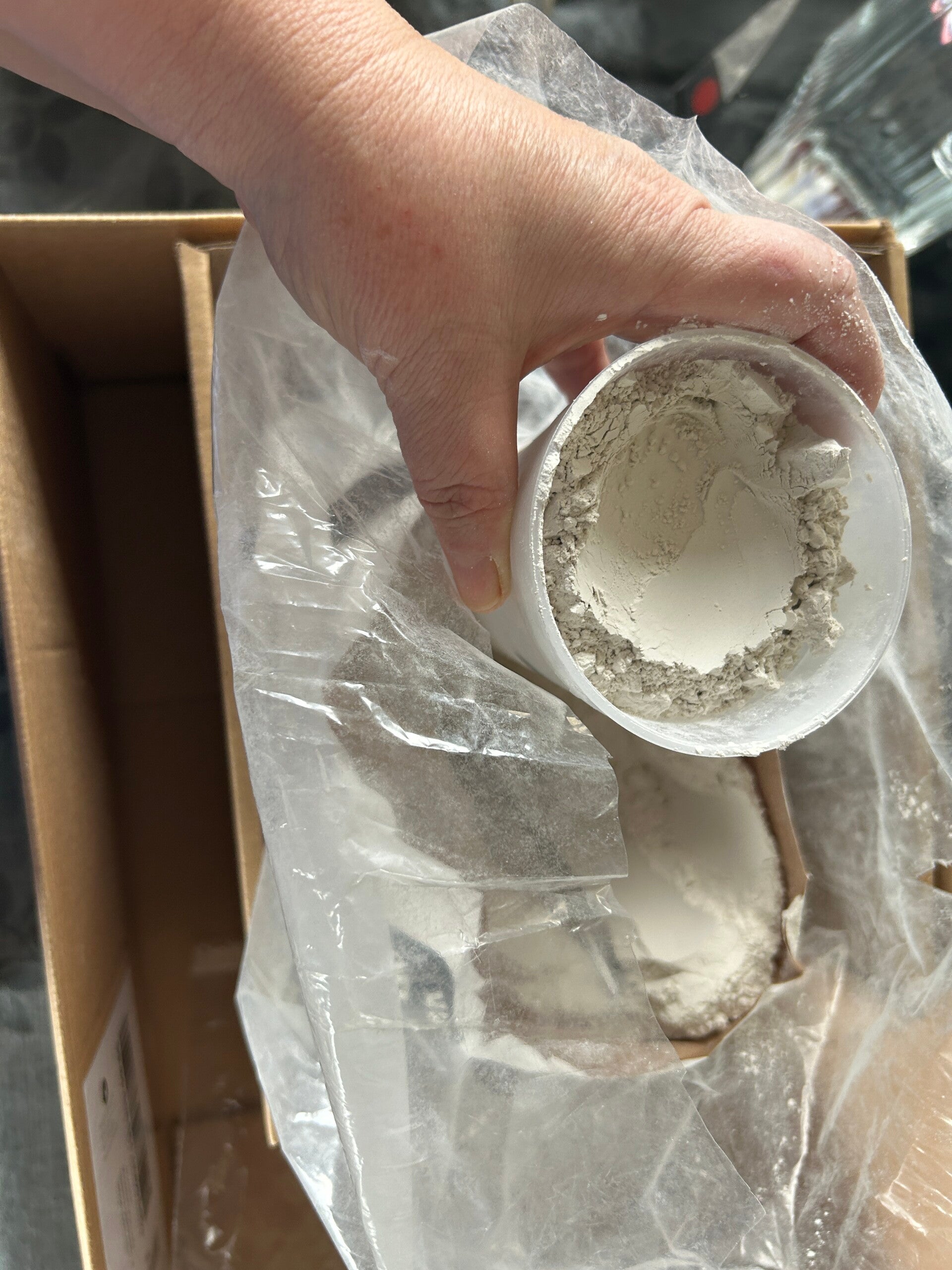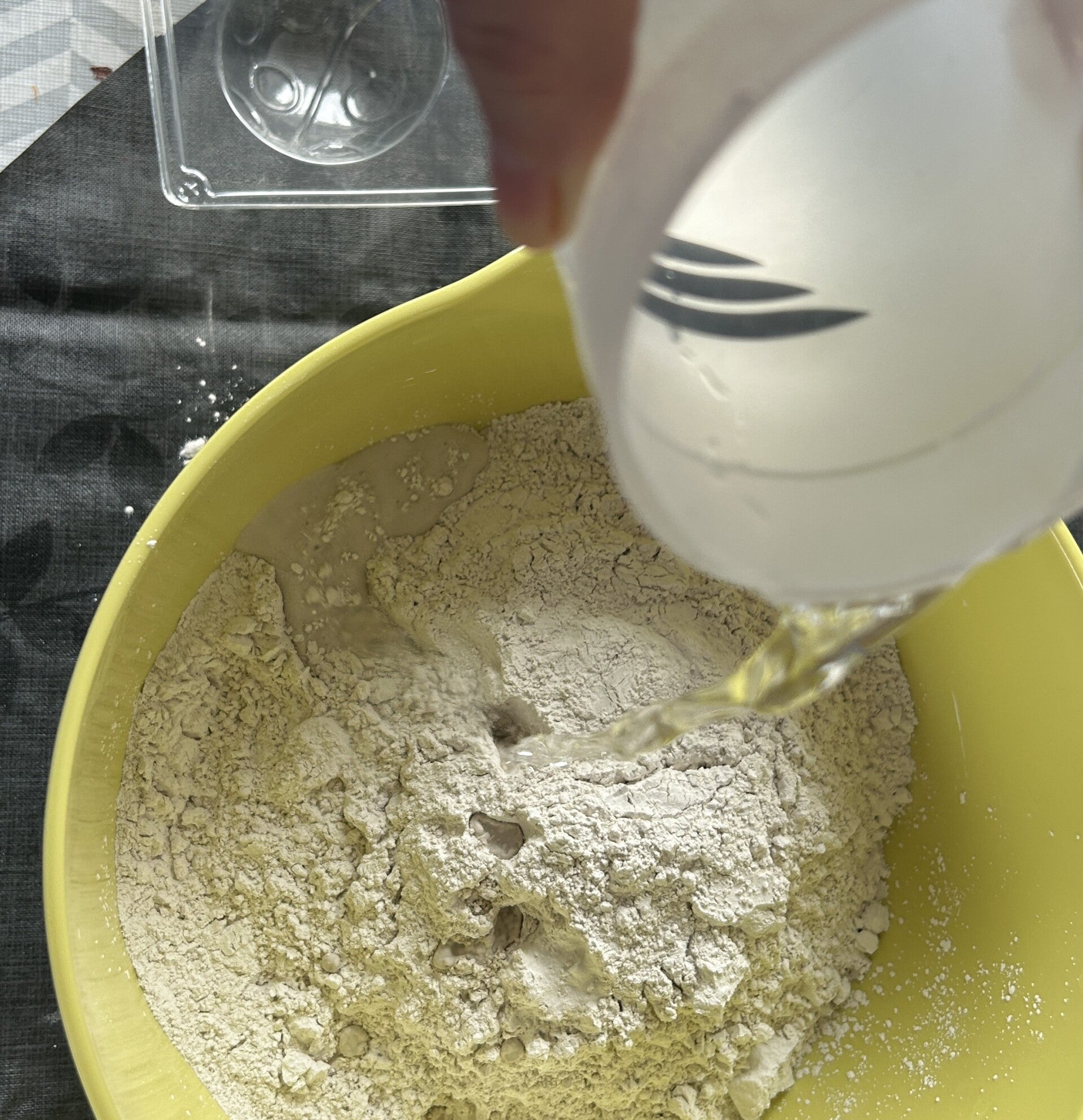 * sorgfältig tauche ich den Messbecher in den Gips