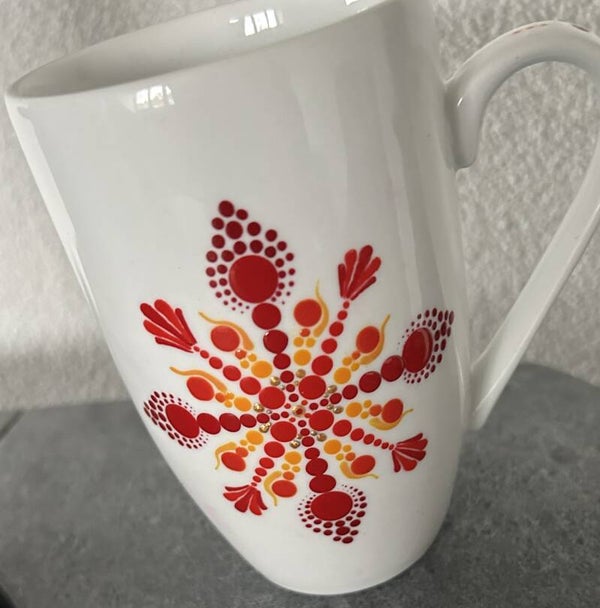 warme sanfte Farben in dunklem kräftigen und doch sanften rot, mit der orangen Highlights die an ein Kaminfeuer erinnern, eine Stimmung in der man sich einfach wohlfühlt, warme Farben und ein sofortiges angenehmes Geniessen.