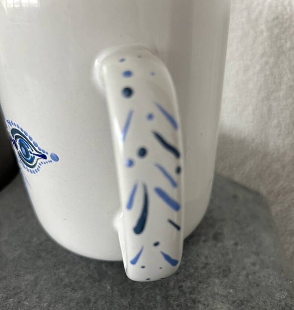 sanfte relaxte blaue Töne ruhen in bedöttelten Punkten auf dieser Tasse und erinnern an die Vielfalt des Element Wasser. Just dreaming on a good time with the ocean blue.