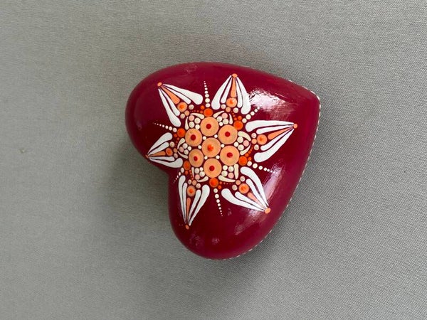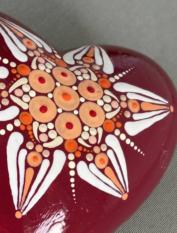 ein sanftes und starkes Herz - es sagt dir - du bist nicht allein - ein dunkles Bordeaux mit hellen sanften beigen bis orangen Nuancen - sanft und doch sehr bestimmt .