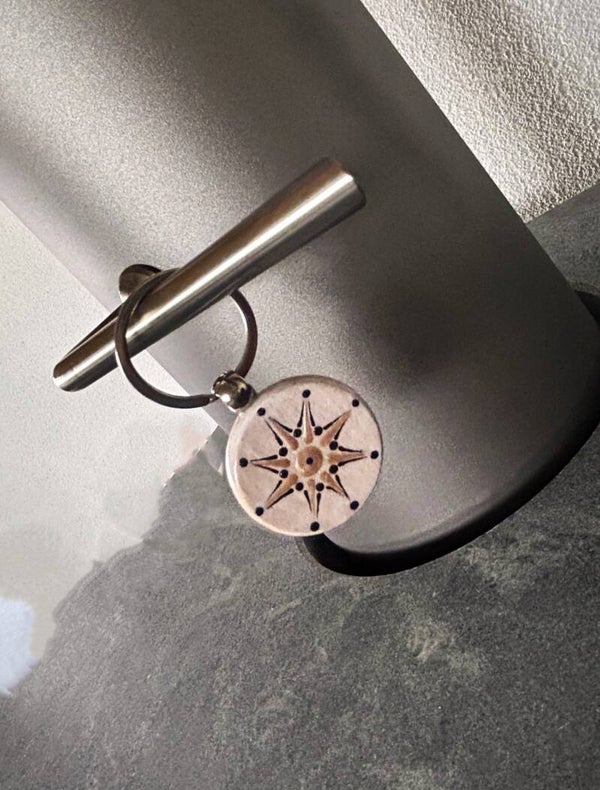 dieser Key-Holder ist ein Unikat in shr hellem Beige grundiert und in Silber -Anthrazit mit Champagner-Beige bedöttelt in Sternform.