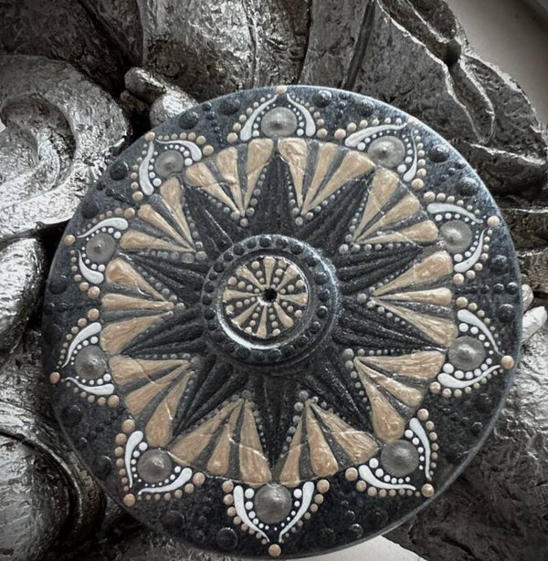 - Punkt für Punkt entstand ein schöner, kräftiger silbriger Stern mit anthrazit umrundet mit zarten weisslichen Highlights - und das sanfte golden - beige das einfach lieblich harmoniert