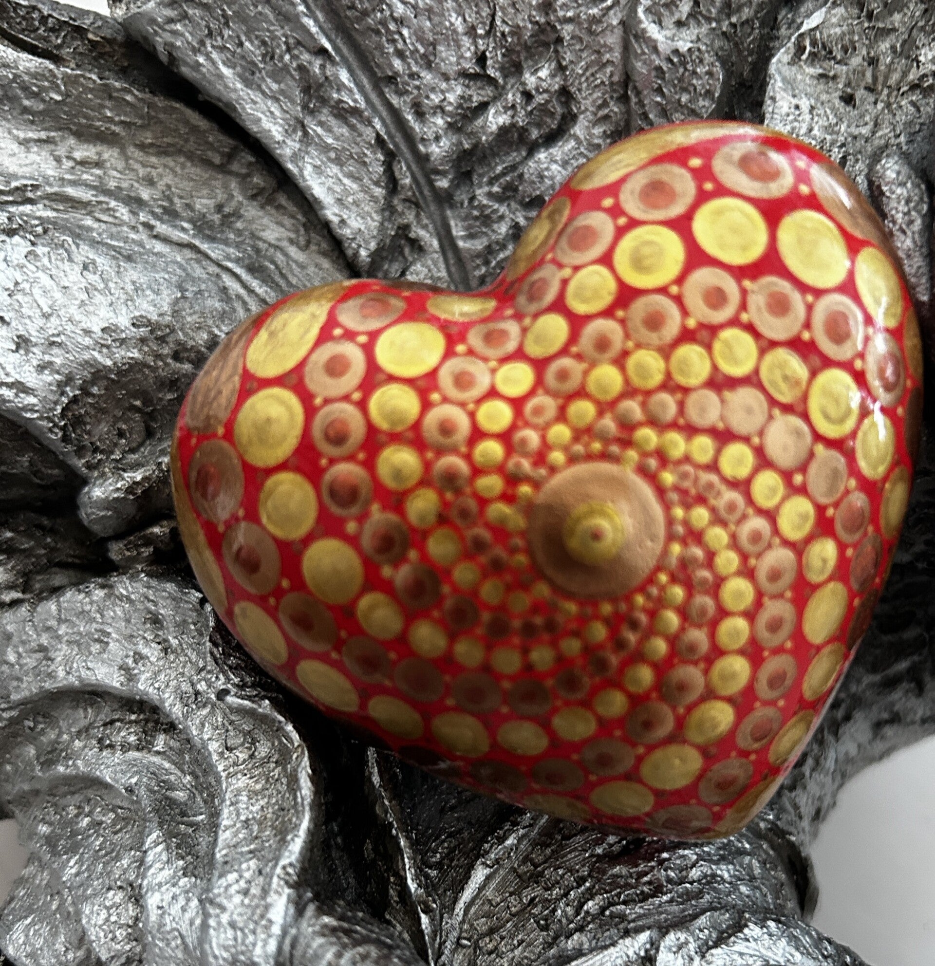 - das Herz ist aus Gips von Hand gegossen, Punkt für Punkt von mir sorgfältig bedottet - gut lackiert damit es lange schön bleibt